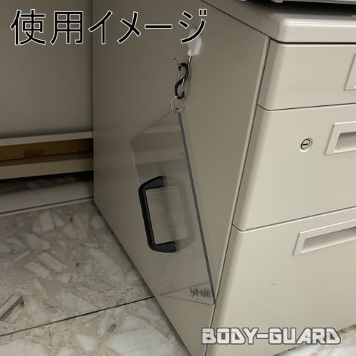 従来からある防護盾から、かなりコンパクトでぶら下げ仕様により
